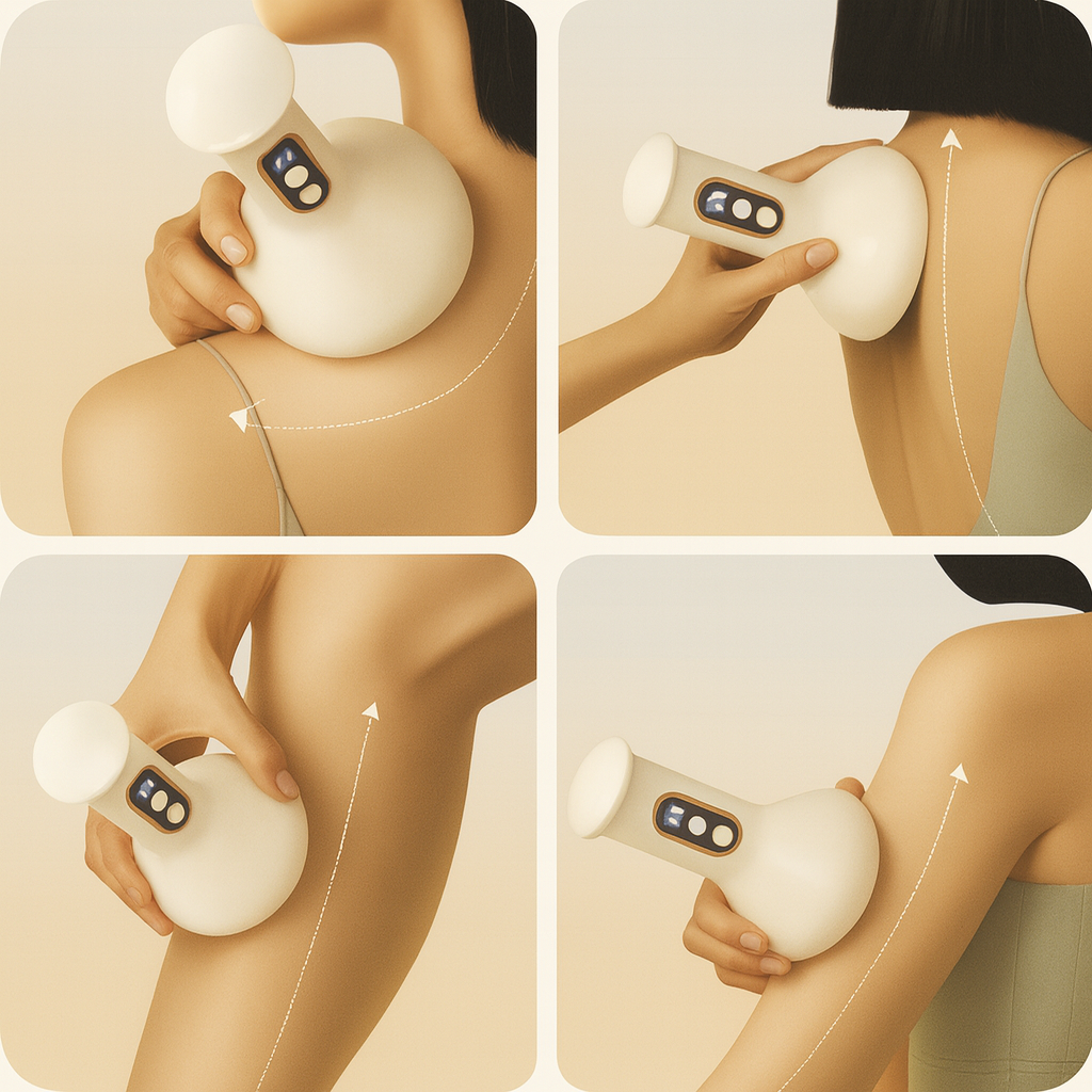 This device is designed to move smoothly along the natural lines of your body, helping release tension exactly where it builds up. The curved shape fits well against the shoulders, arms, and lower back, making each stroke feel comfortable and controlled. You can guide it in simple upward or outward motions to relax tight muscles quickly. It is an easy way to enjoy focused muscle relief anytime you need it.